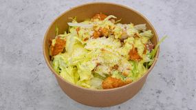 Σαλάτα με iceberg, φιλέτο κοτόπουλου ή crispy κοτόπουλο, μπέικον, κρουτόν, παρμεζάνα και Ceasars dressing