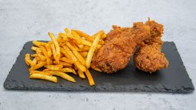 3 αυθεντικά κοπανάκια κοτόπουλο. Συνοδεύεται με πατάτες τηγανητές