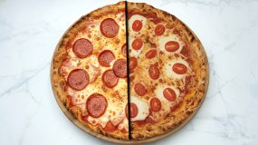 Συνδυάστε δύο πίτσες σε μία! Φτίαξτε τη πίτσα της επιλογής σας συνδυάζοντας δυο διαφορετικές πίτσες σε μία.