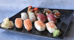 Αυτό το combo περιέχει 2 nigiri tuna, 2 nigiri mushroom, 2 nigiri salmon, 2 nigiri eel, 2 nigiri seabass & 2 nigiri shrimp