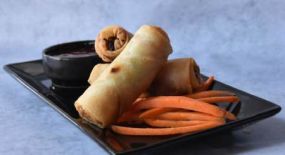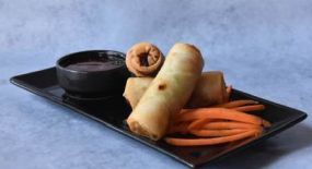 3 Τεμάχια. Ψιλοκομμένα λαχανικά τυλιγμένα με τραγανή ζύμη με συνοδευτική sweet chili sauce