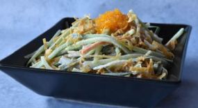Σαλάτα με αγγούρι, σουρίμι, μαγιονέζα, κόκκινο αυγόταραχο & tempura flour
