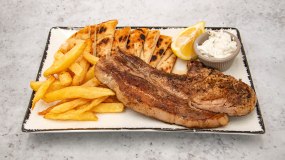 1 μερίδα κρεάτικων, 1 σαλάτα επιλογής, 1 αναψυκτικό
