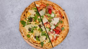 Συνδυάστε δύο πίτσες σε μία! Φτίαξτε τη πίτσα της επιλογής σας συνδυάζοντας δυο διαφορετικές πίτσες σε μία.