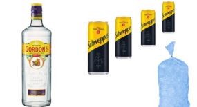 1 Gordon's London Dry Τζιν 700ml, 6 Tonic Schweppes 330ml, 1 Σακούλα πάγου μικρή