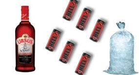 1 Ursus Βότκα 700ml, 6 Hell energy drink 250ml, 1 Σακούλα πάγου μικρή