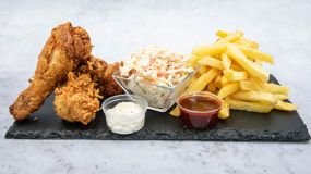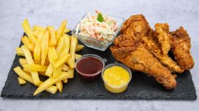 Τηγανητό τύπου KFC. 2 τμχ τεμαχισμένο κοτόπουλο Kalymnian Fried Chicken, 2 τμχ φτερούγες κοτόπουλο, 2 τμχ φιλετάκια κοτόπουλο, ατομική μερίδα πατάτες τηγανητές, ατομική σαλάτα coleslaw, σως και αναψυκτικό 330ml επιλογής σας.