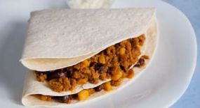 Με κοτόπουλο, μαρούλι, μπέικον, ντομάτα, τυρί, πατάτες τηγανητές στο air fryer και μαγιονέζα ή σως Καίσαρα.